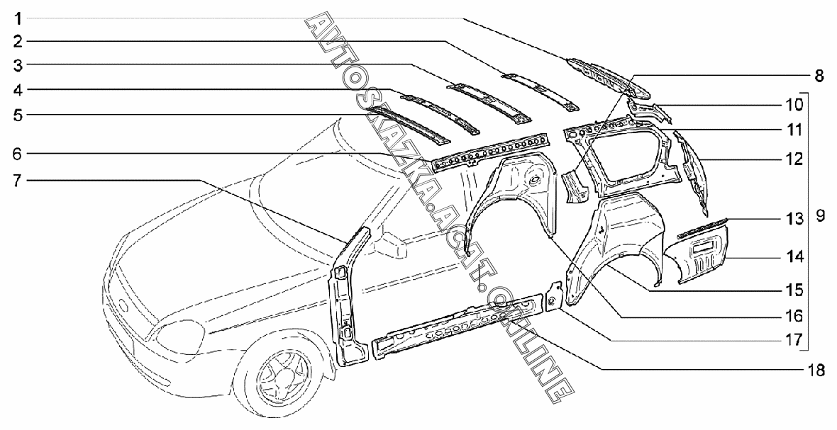 Каркас боковины и задка ВАЗ 2170 (21702-30, 21703-31, 21703-33, 21705-31, 21705-33, 21705-34 "Priora FL" (седан))