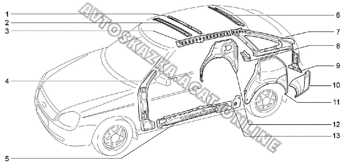 Каркас боковины и задка ВАЗ 2170 (21702-30, 21703-31, 21703-33, 21705-31, 21705-33, 21705-34 "Priora FL" (седан))