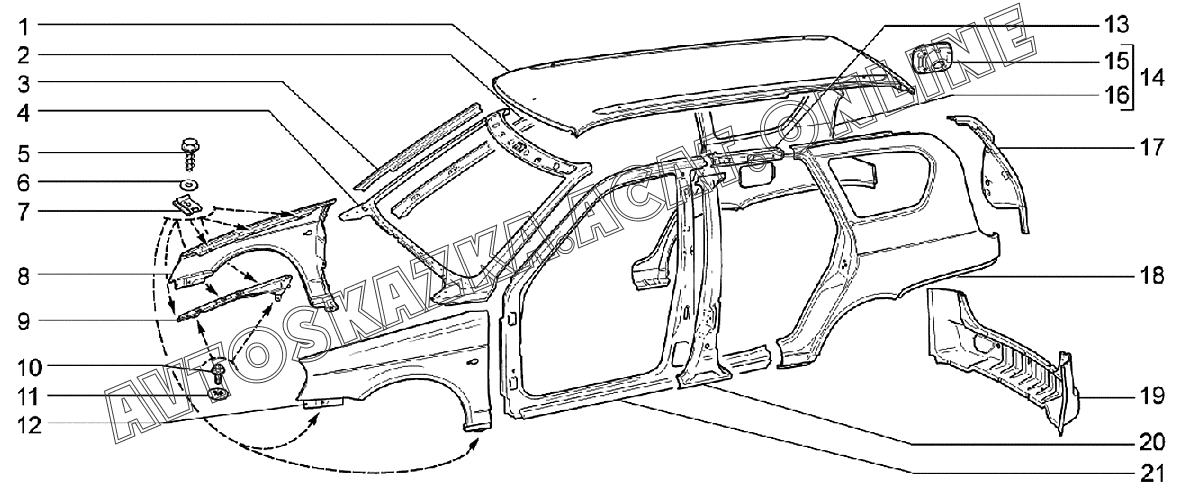| Название детали: | Панель крыши |