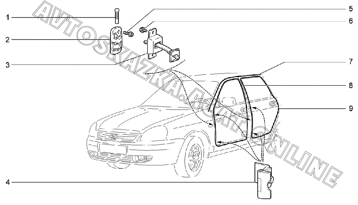 Навеска боковых дверей и уплотнители ВАЗ 2170 (21702-30, 21703-31, 21703-33, 21705-31, 21705-33, 21705-34 "Priora FL" (седан))