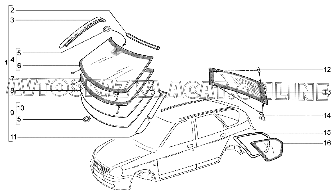 Окна ВАЗ 2170 (21702-30, 21703-31, 21703-33, 21705-31, 21705-33, 21705-34 "Priora FL" (седан))