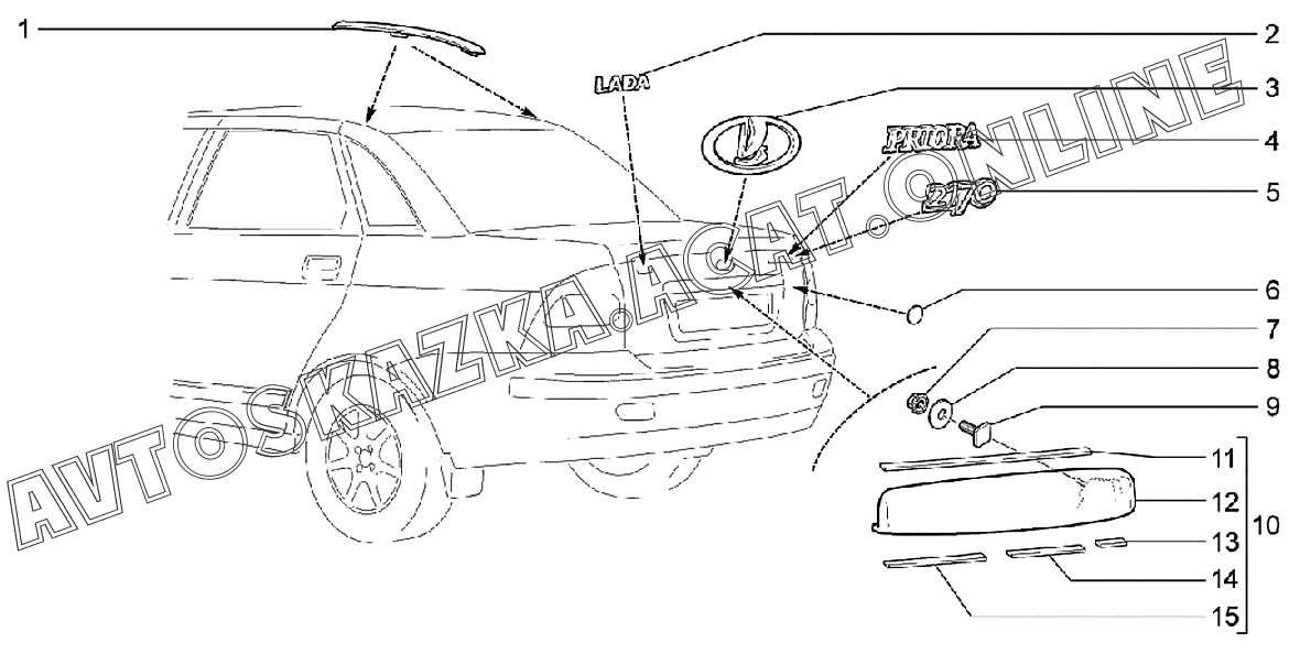 Накладки и надписи декоративные ВАЗ 2170 (21702-30, 21703-31, 21703-33, 21705-31, 21705-33, 21705-34 "Priora FL" (седан))