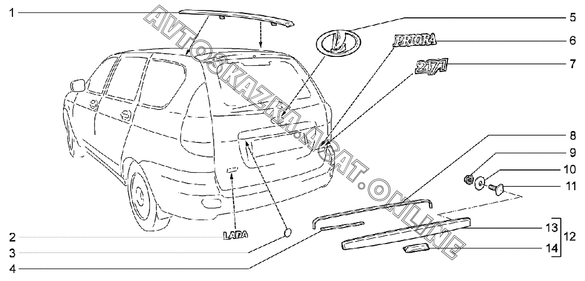 Накладки и надписи декоративные ВАЗ 2170 (21702-30, 21703-31, 21703-33, 21705-31, 21705-33, 21705-34 "Priora FL" (седан))