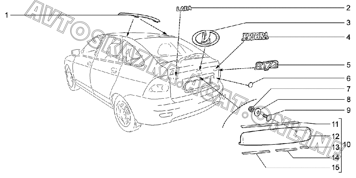 Накладки и надписи декоративные ВАЗ 2170 (21702-30, 21703-31, 21703-33, 21705-31, 21705-33, 21705-34 "Priora FL" (седан))