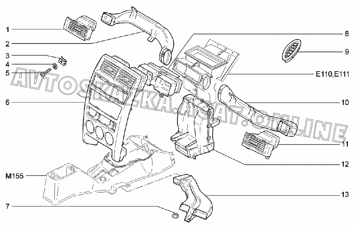 Воздухопроводы и сопла ВАЗ 2170 (21702-30, 21703-31, 21703-33, 21705-31, 21705-33, 21705-34 "Priora FL" (седан))