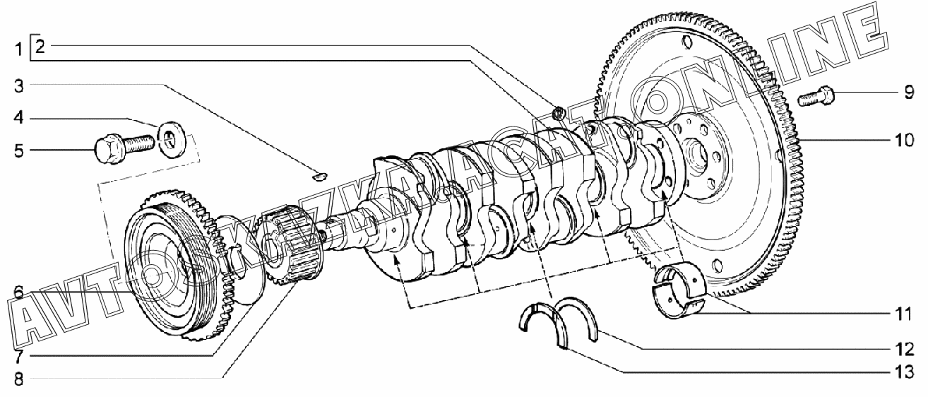 Вал коленчатый и диск приводной ВАЗ 2191 (21911-40, 21911-41, 21912-42, 21917-41, 21917-42 "Granta")