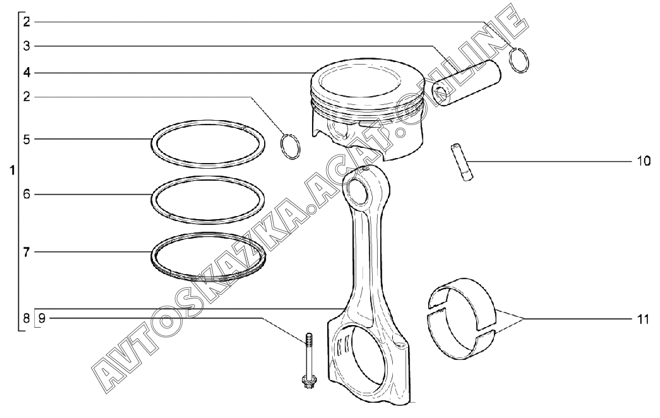 | Название детали: | Поршень и шатун в сборе |