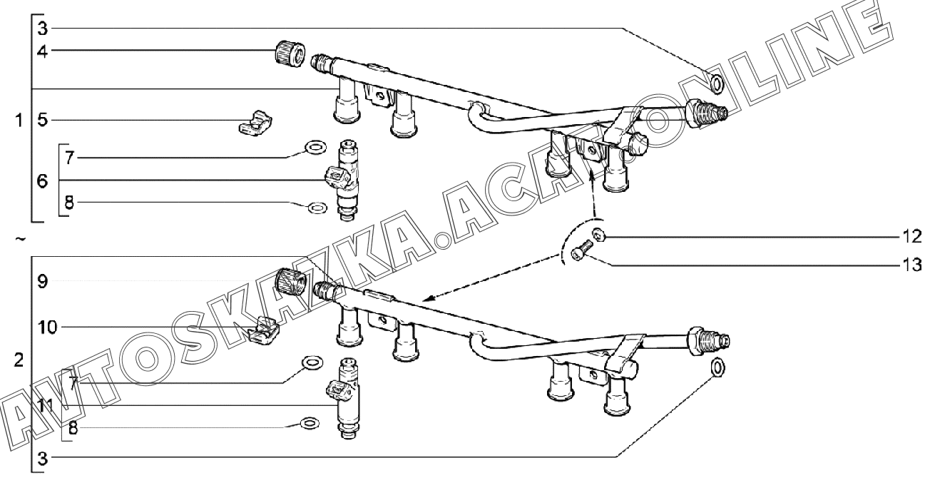 Рампа и форсунки ВАЗ 2191 (21911-40, 21911-41, 21912-42, 21917-41, 21917-42 "Granta")