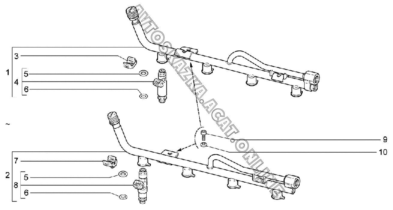 Рампа и форсунки ВАЗ 2191 (21911-40, 21911-41, 21912-42, 21917-41, 21917-42 "Granta")