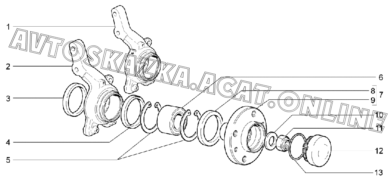 Кулаки поворотные и ступицы ВАЗ 2191 (21911-40, 21911-41, 21912-42, 21917-41, 21917-42 "Granta")