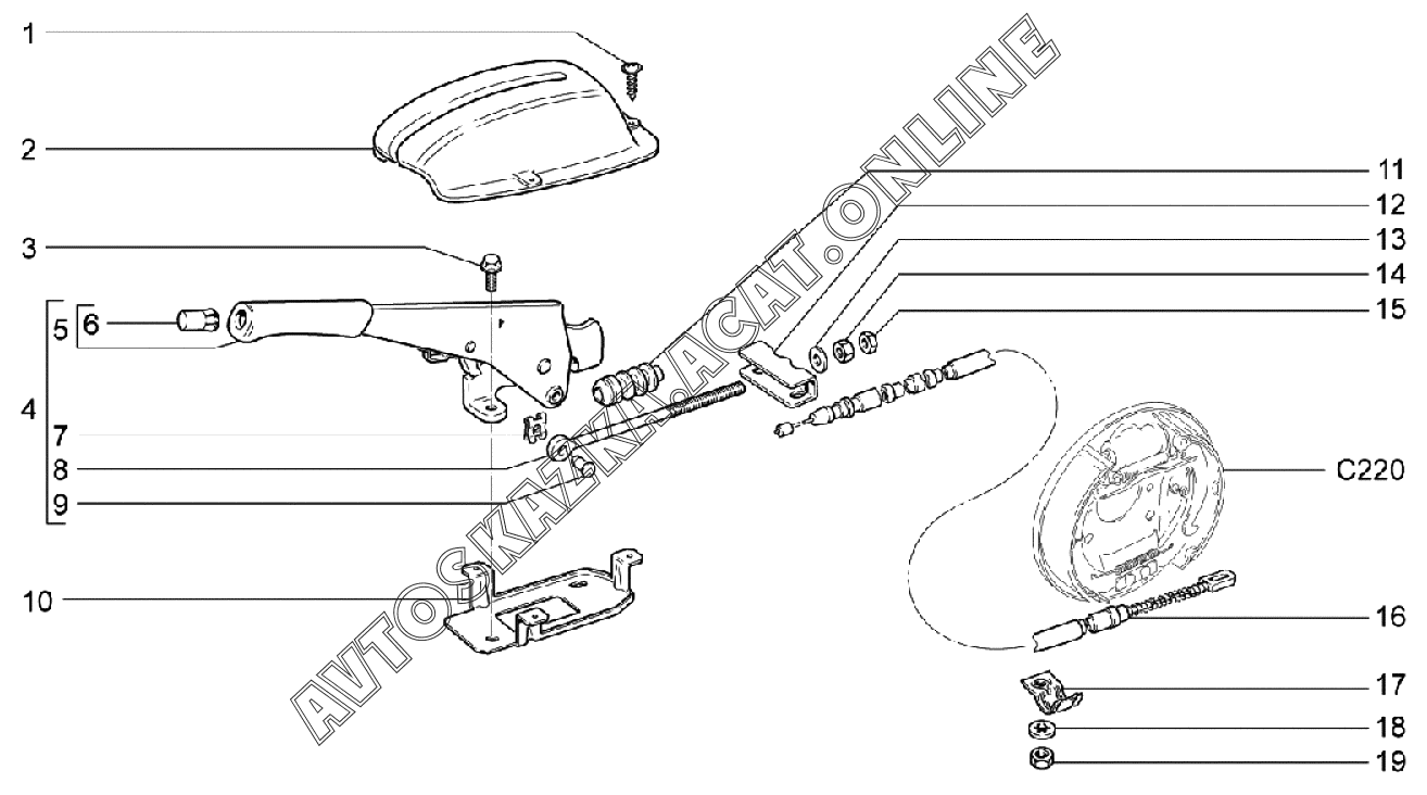 Привод стояночного тормоза ВАЗ 2191 (21911-40, 21911-41, 21912-42, 21917-41, 21917-42 "Granta")