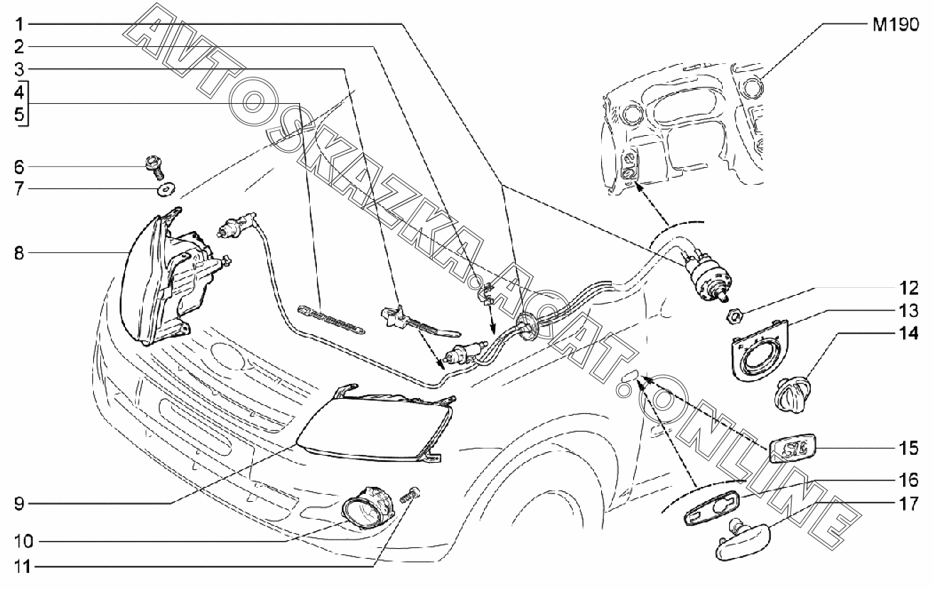 Фонари передние и гидрокорректор ВАЗ 2191 (21911-40, 21911-41, 21912-42, 21917-41, 21917-42 "Granta")