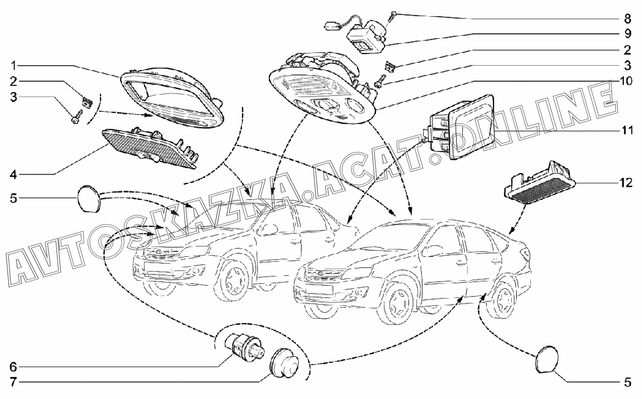 Освещение салона ВАЗ 2191 (21911-40, 21911-41, 21912-42, 21917-41, 21917-42 "Granta")