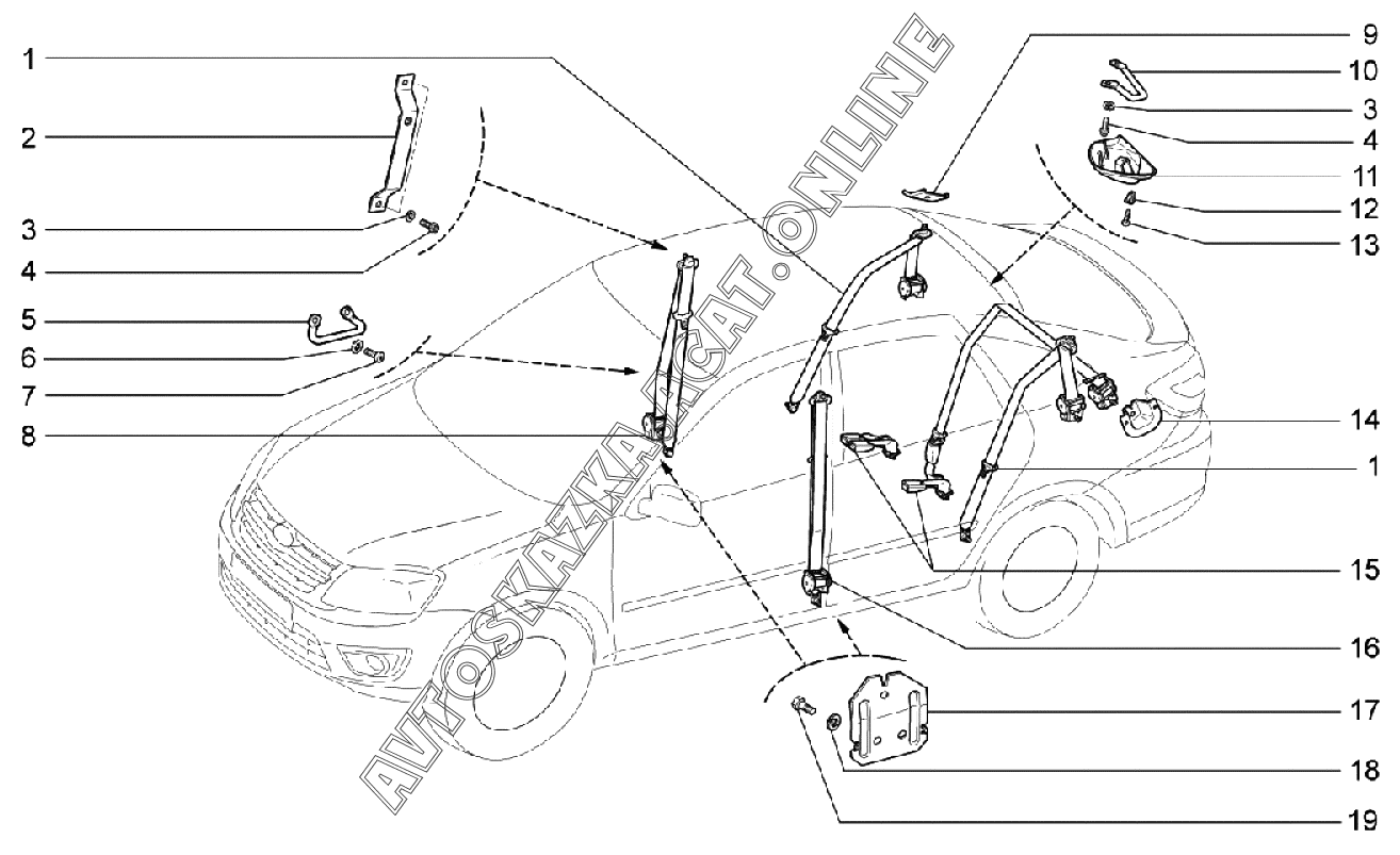 Ремни безопасности ВАЗ 2191 (21911-40, 21911-41, 21912-42, 21917-41, 21917-42 "Granta")