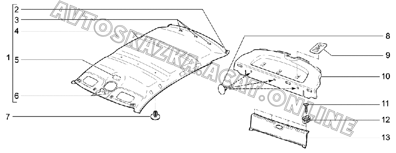 Обивка крыши, задка и полки багажника ВАЗ 2191 (21911-40, 21911-41, 21912-42, 21917-41, 21917-42 "Granta")