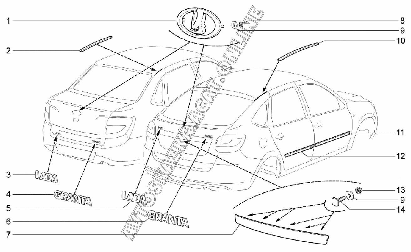 Орнаменты и накладки облицовочные ВАЗ 2191 (21911-40, 21911-41, 21912-42, 21917-41, 21917-42 "Granta")