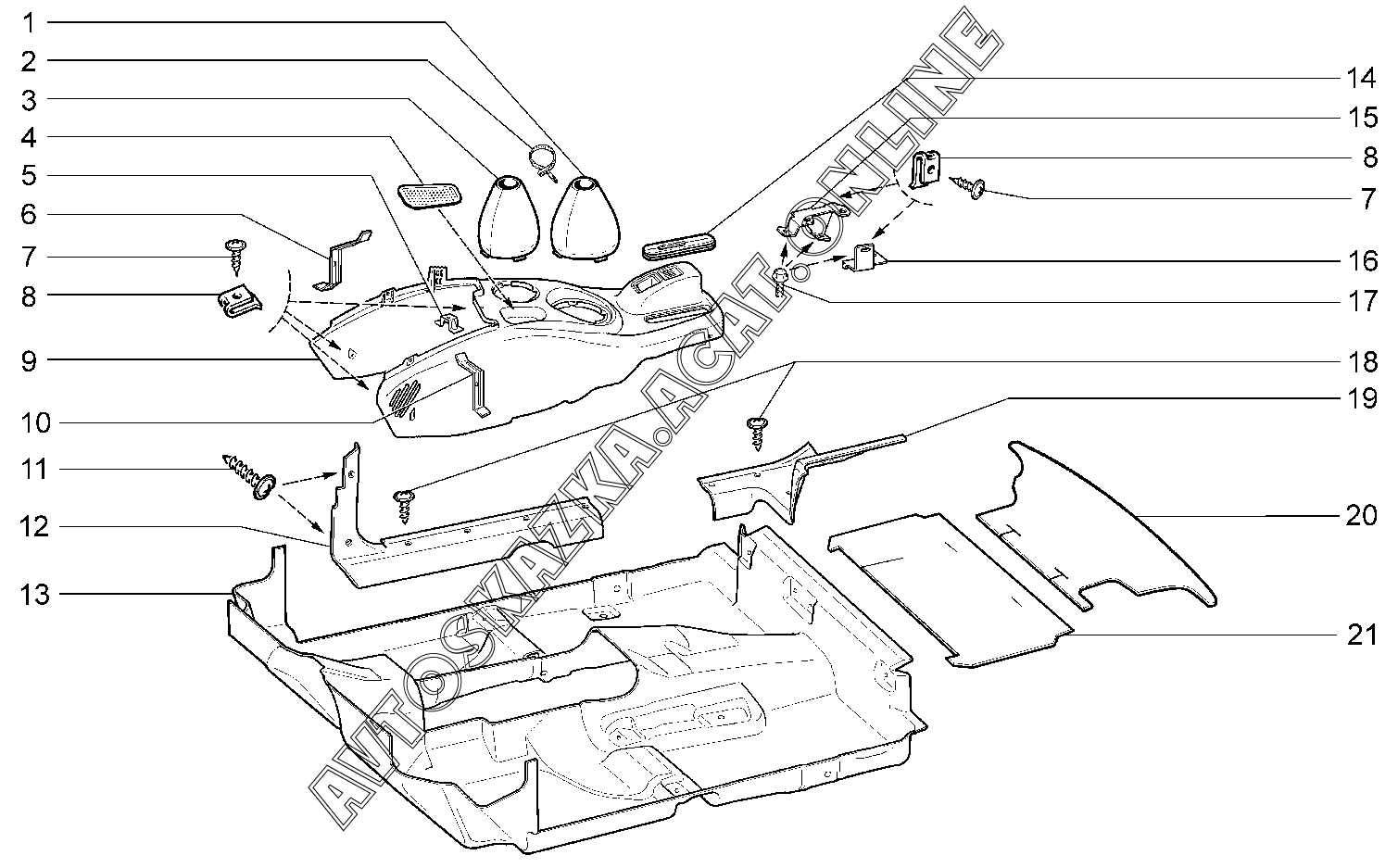 | Название детали: | Кронштейн облицовки туннеля пола средний |