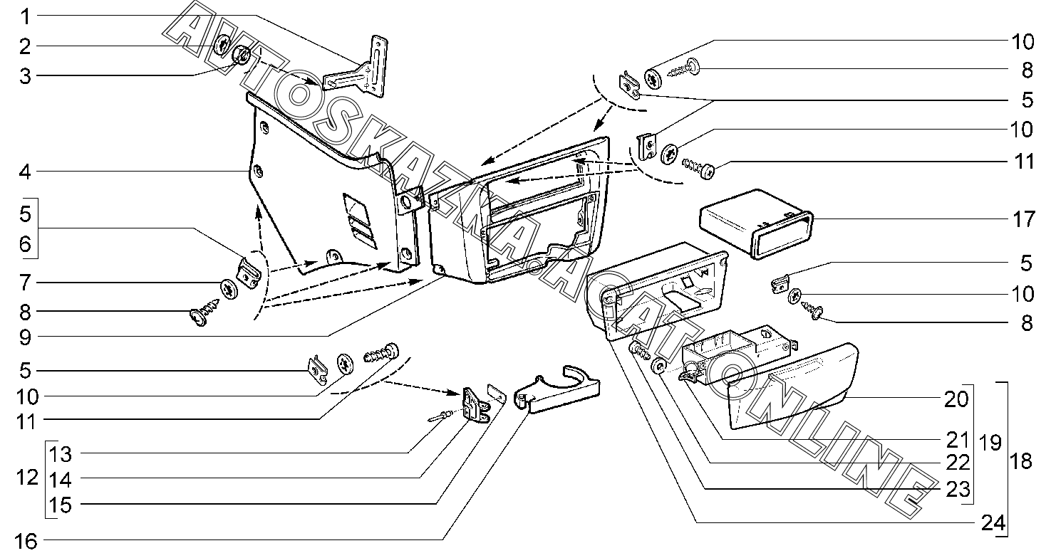 Консоль панели приборов (12, 13, 11, 30, 31, 32) ВАЗ 2123 (2123 "Шевроле-Нива")
