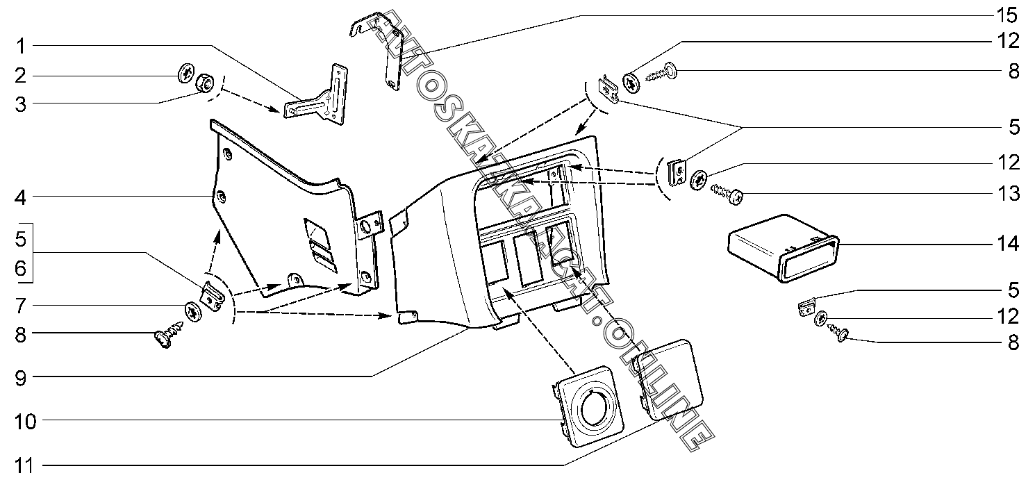 | Название детали: | Кронштейн крепления экрана консоли панели приборов |