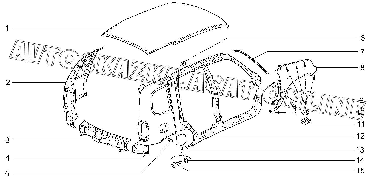 Панели кузова (12, 13, 11, 30, 31, 32) ВАЗ 2123 (2123 "Шевроле-Нива")