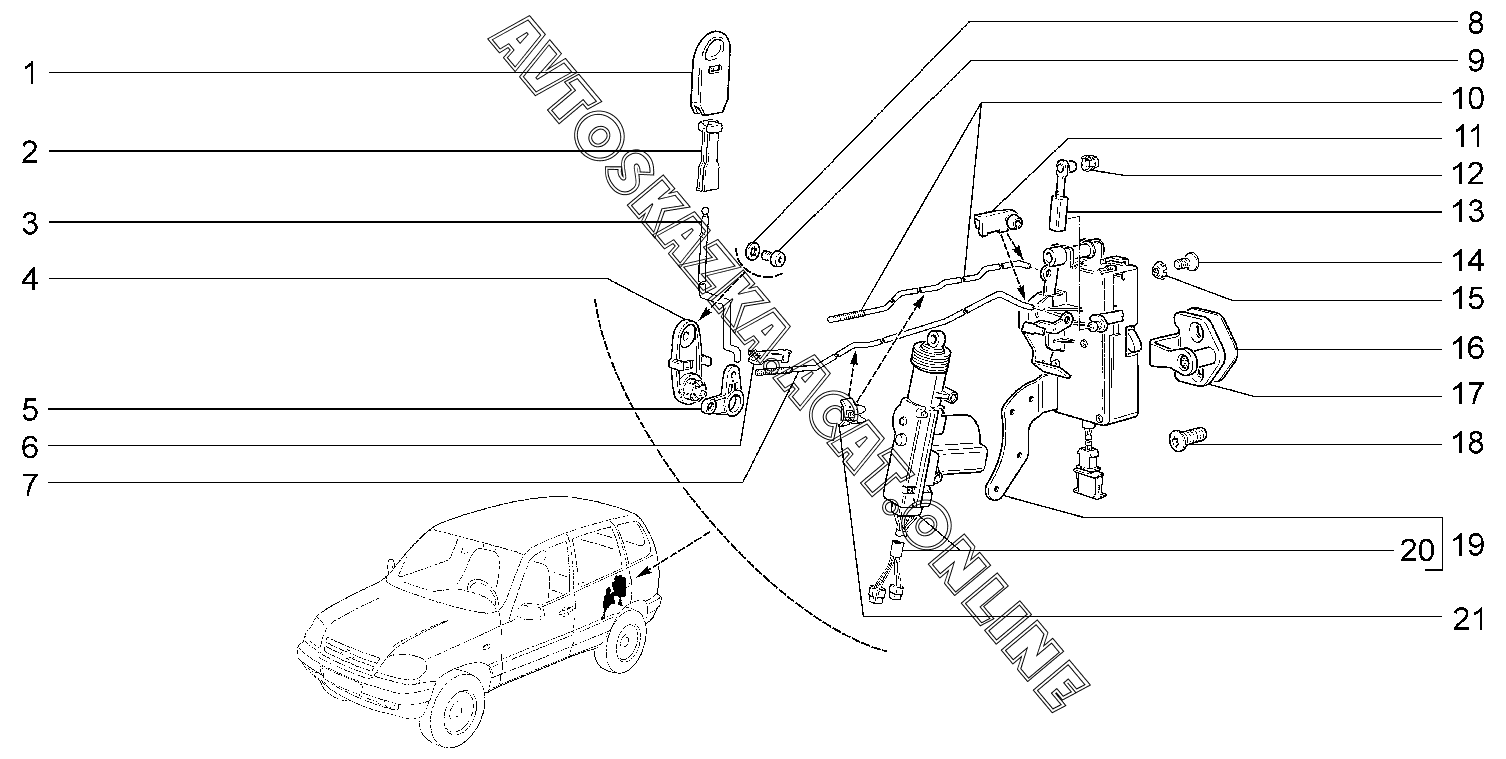 Замки задних дверей ВАЗ 2123 (2123 "Шевроле-Нива")