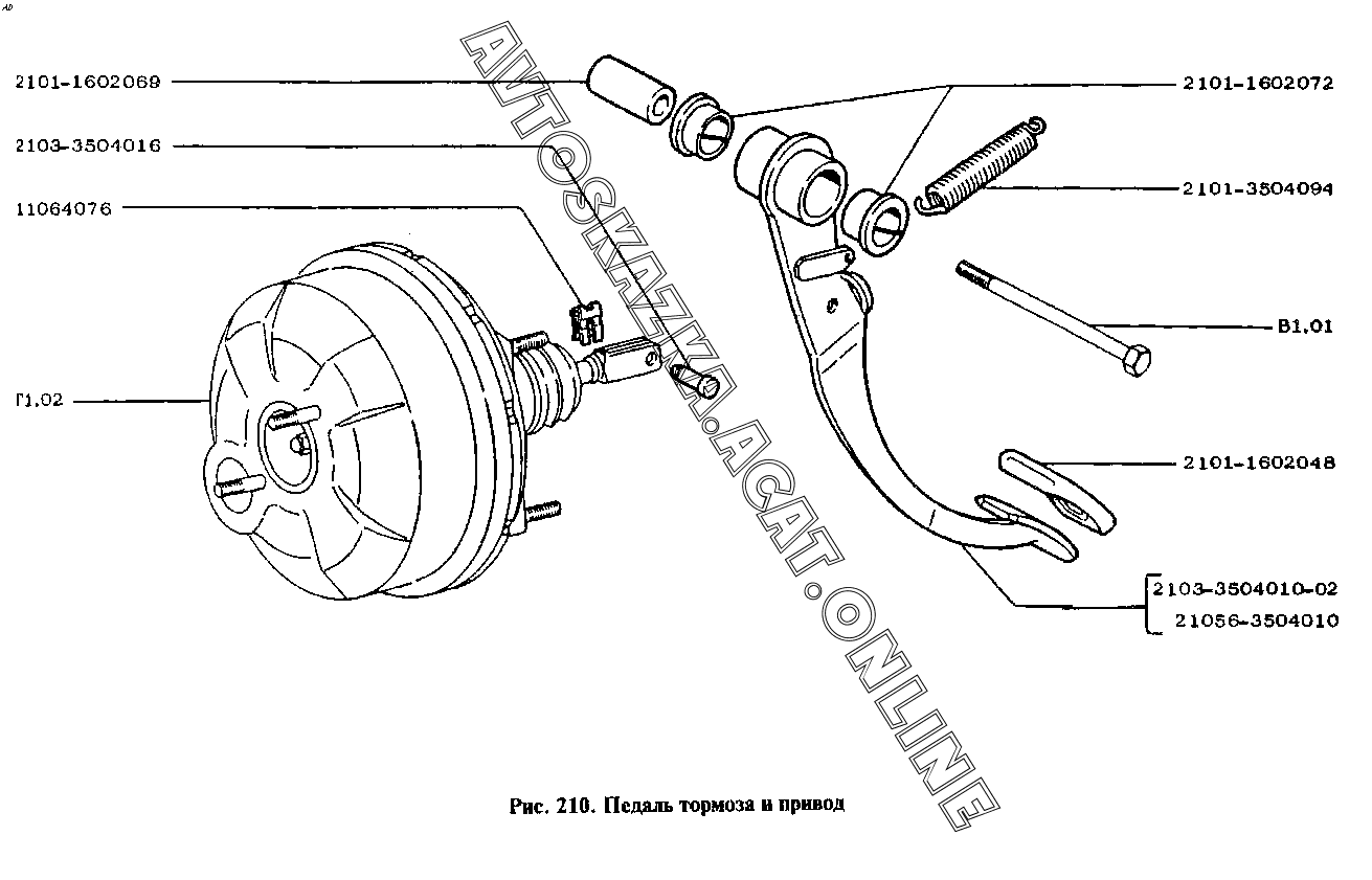 Педаль тормоза и привод ВАЗ 2105 (21051, 21053, 21056, 21057)