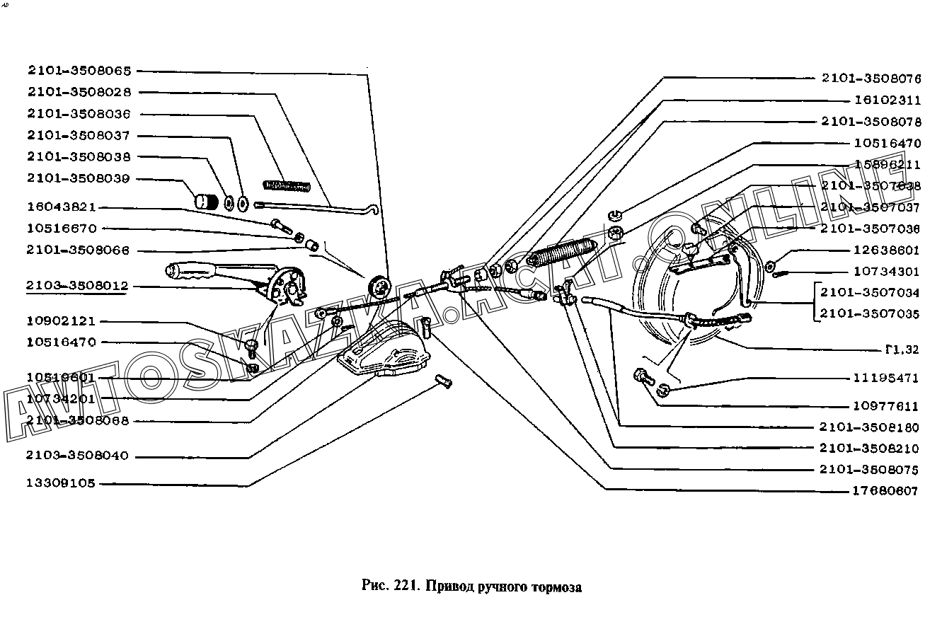 Привод ручного тормоза ВАЗ 2105 (21051, 21053, 21056, 21057)