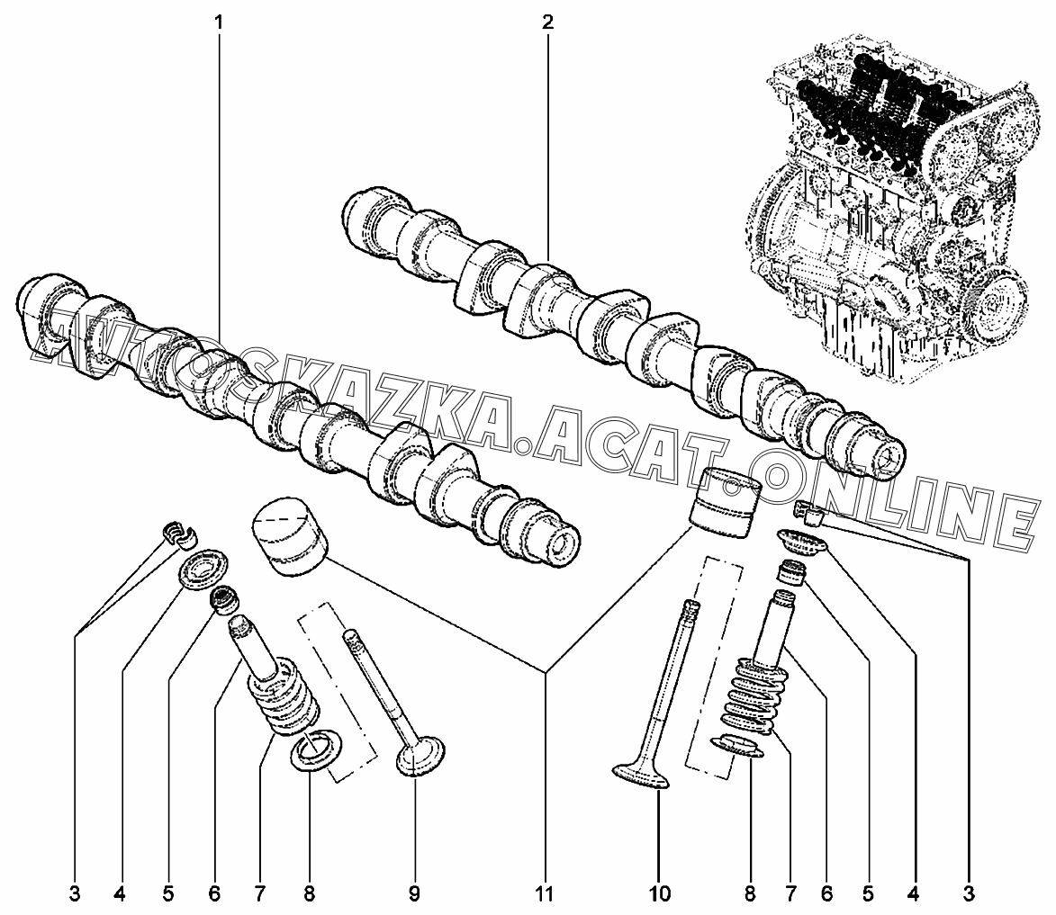 Распредвалы, клапаны (16 кл.) ВАЗ 2190 (Granta FL Cross)