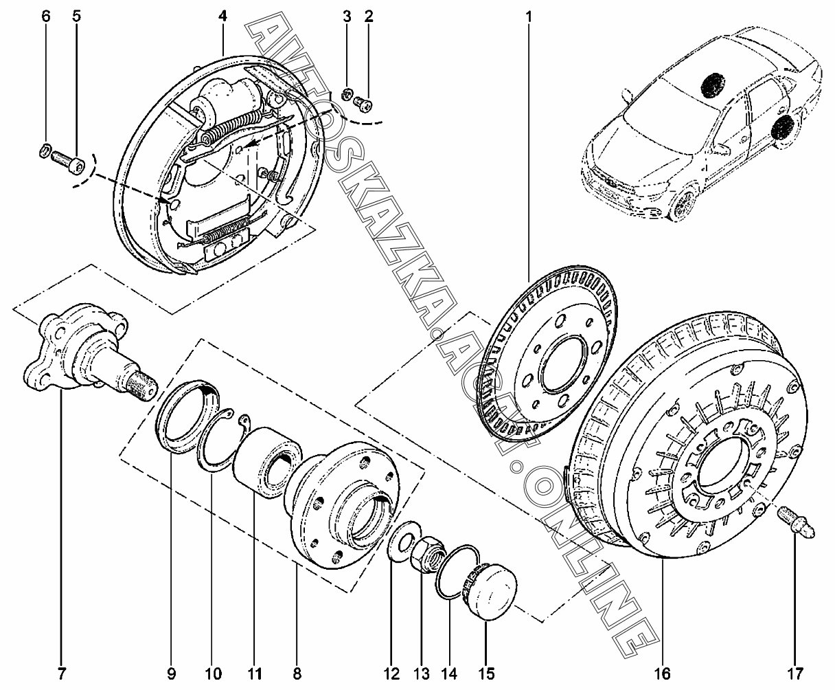 Ступица и барабан заднего тормоза ВАЗ 2190 (Granta FL Cross)