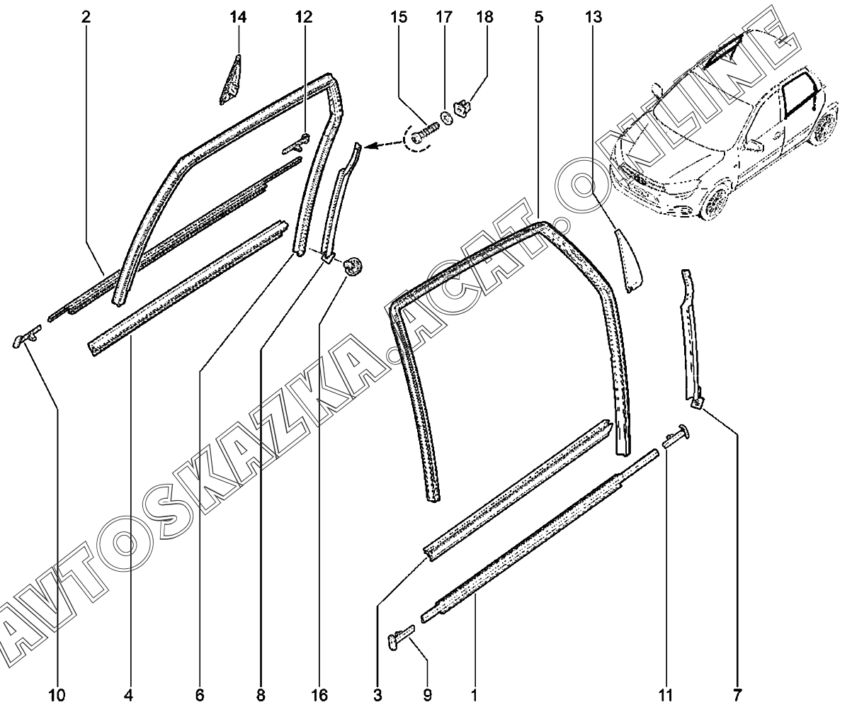 | Название детали: | Уплотнитель опускного стекла задней двери внутренний 8450001792 |