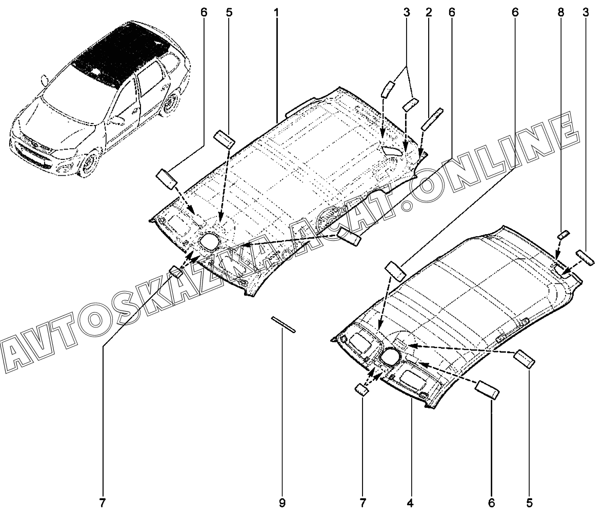 Обивка крыши CGD, KGD ВАЗ 2190 (Granta FL Cross)