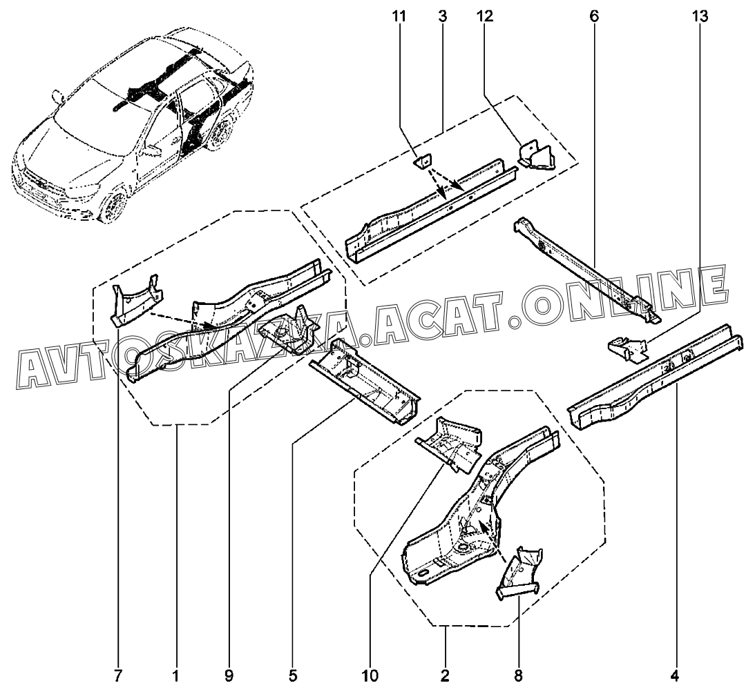 Каркас заднего пола LGD, BGD ВАЗ 2190 (Granta FL Cross)