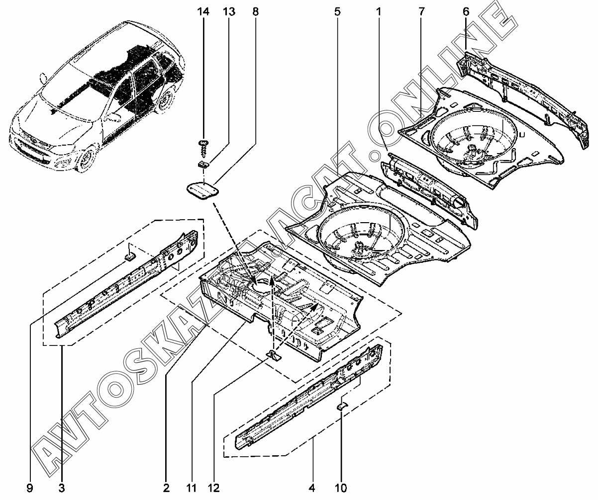 Панель среднего и заднего пола СGD, КGD ВАЗ 2190 (Granta FL Cross)