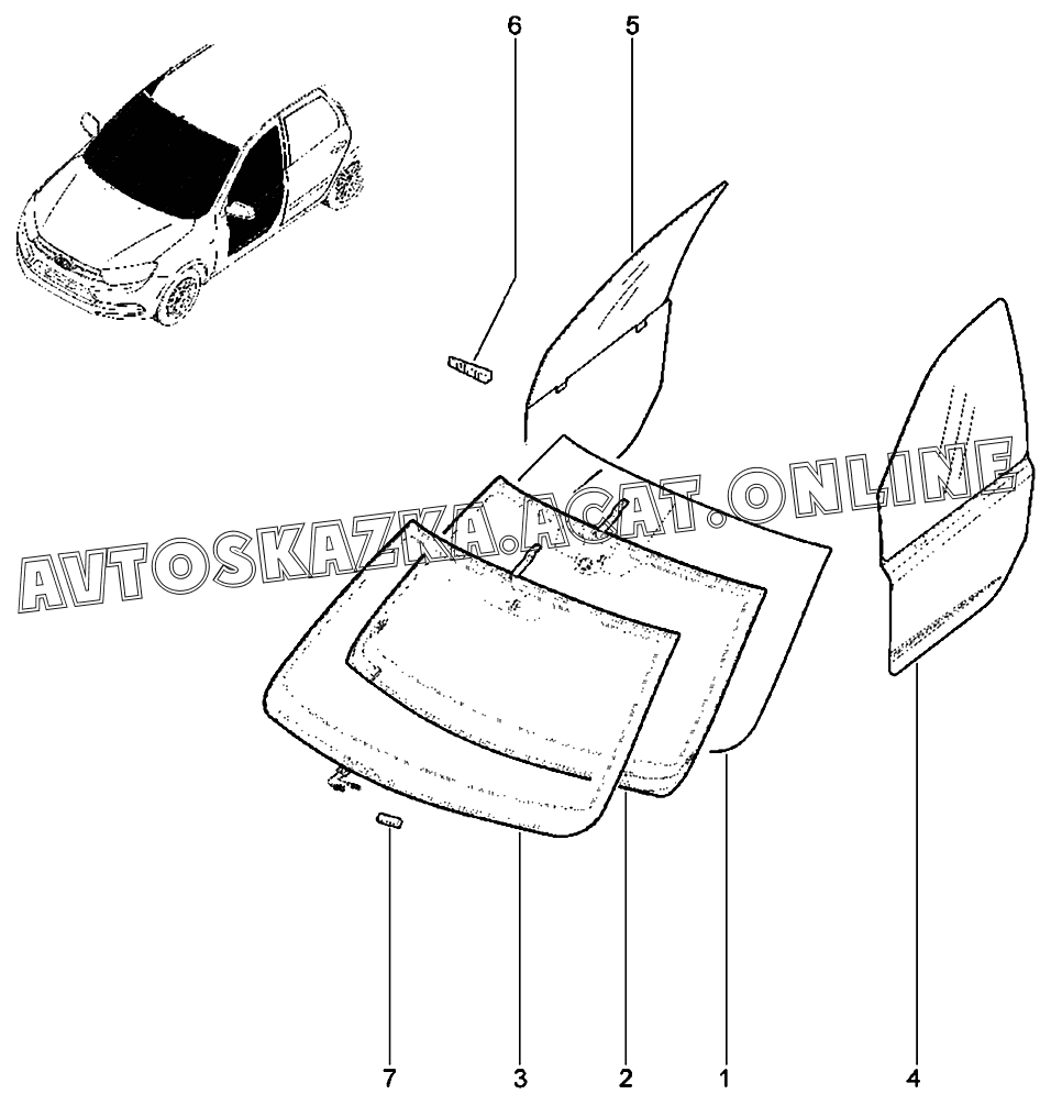 Стекла ветрового окна и передних дверей ВАЗ 2190 (Granta FL Cross)