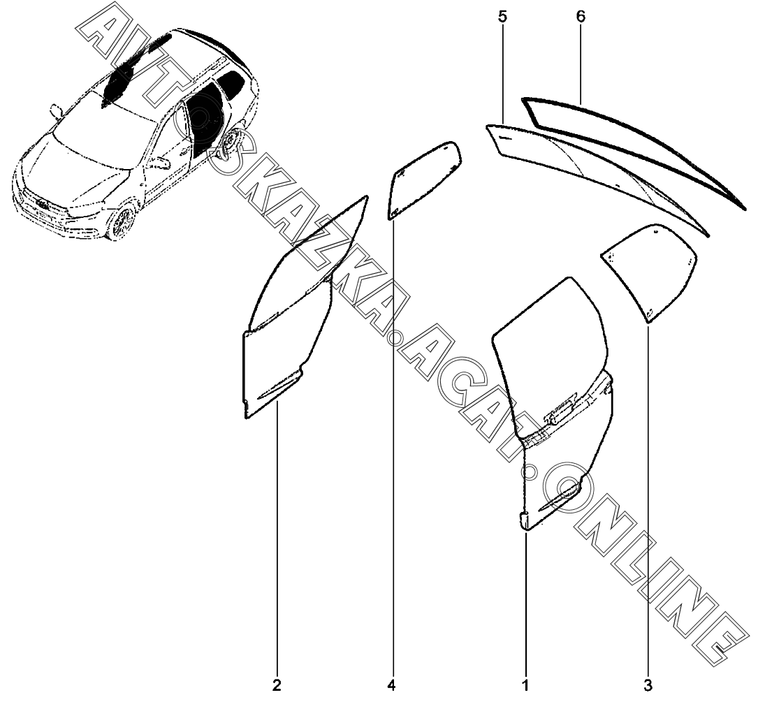 Стекла задних дверей и задка KGD ВАЗ 2190 (Granta FL Cross)