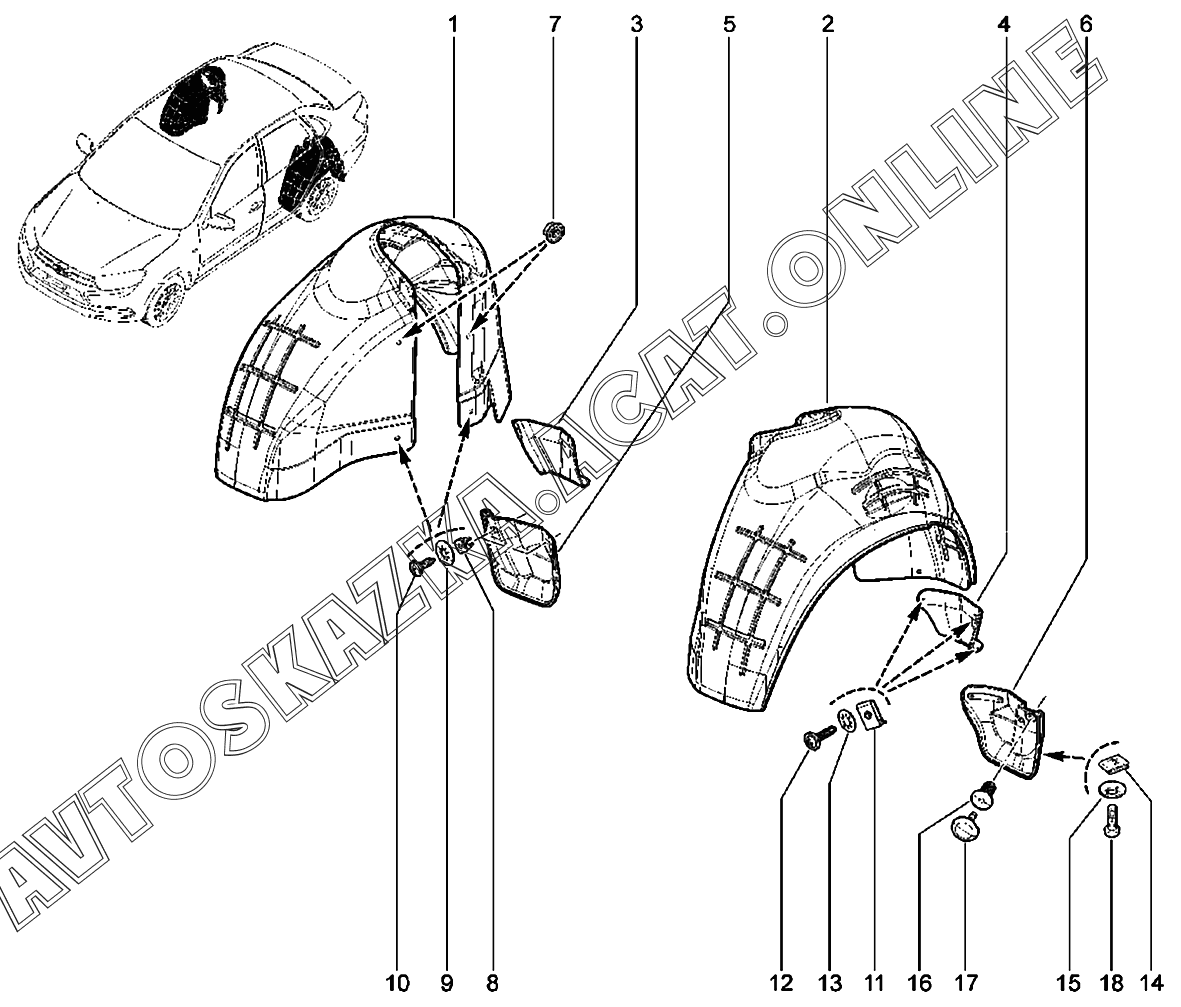 Щиток и фартук заднего крыла ВАЗ 2190 (Granta FL Cross)