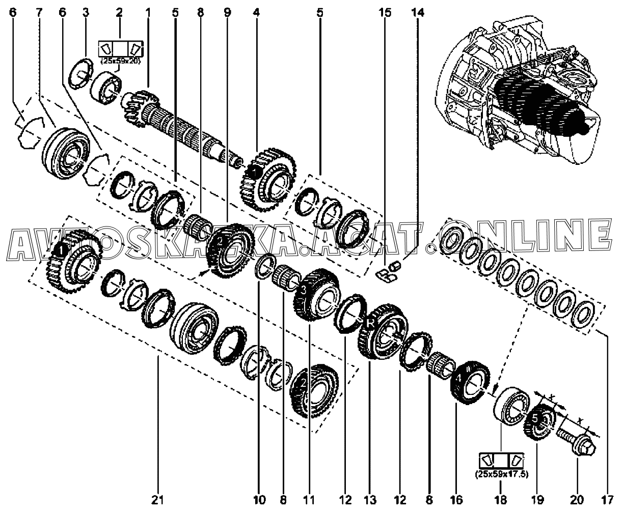 | Название детали: | Промежуточная шестерня второй передачи в сборе |