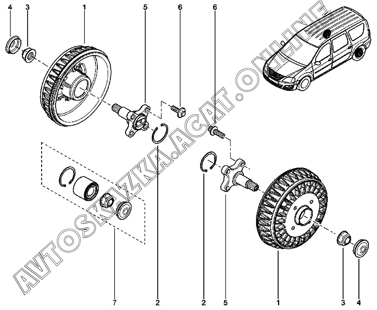 Ступица и барабан заднего тормоза ВАЗ Largus