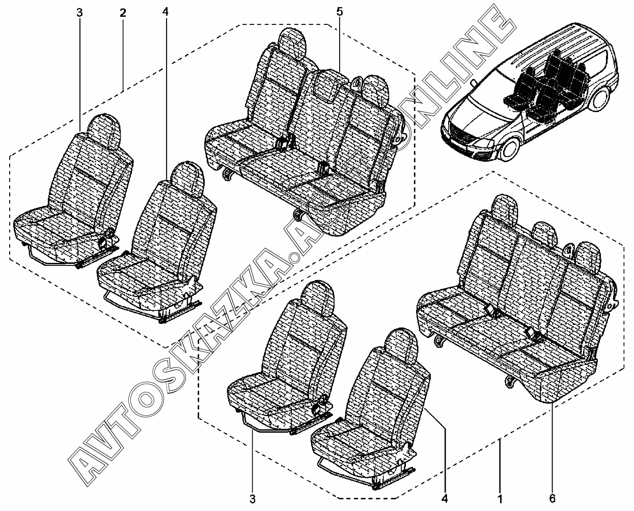 Комплект сидений (1 и 2 ряда) ВАЗ Largus
