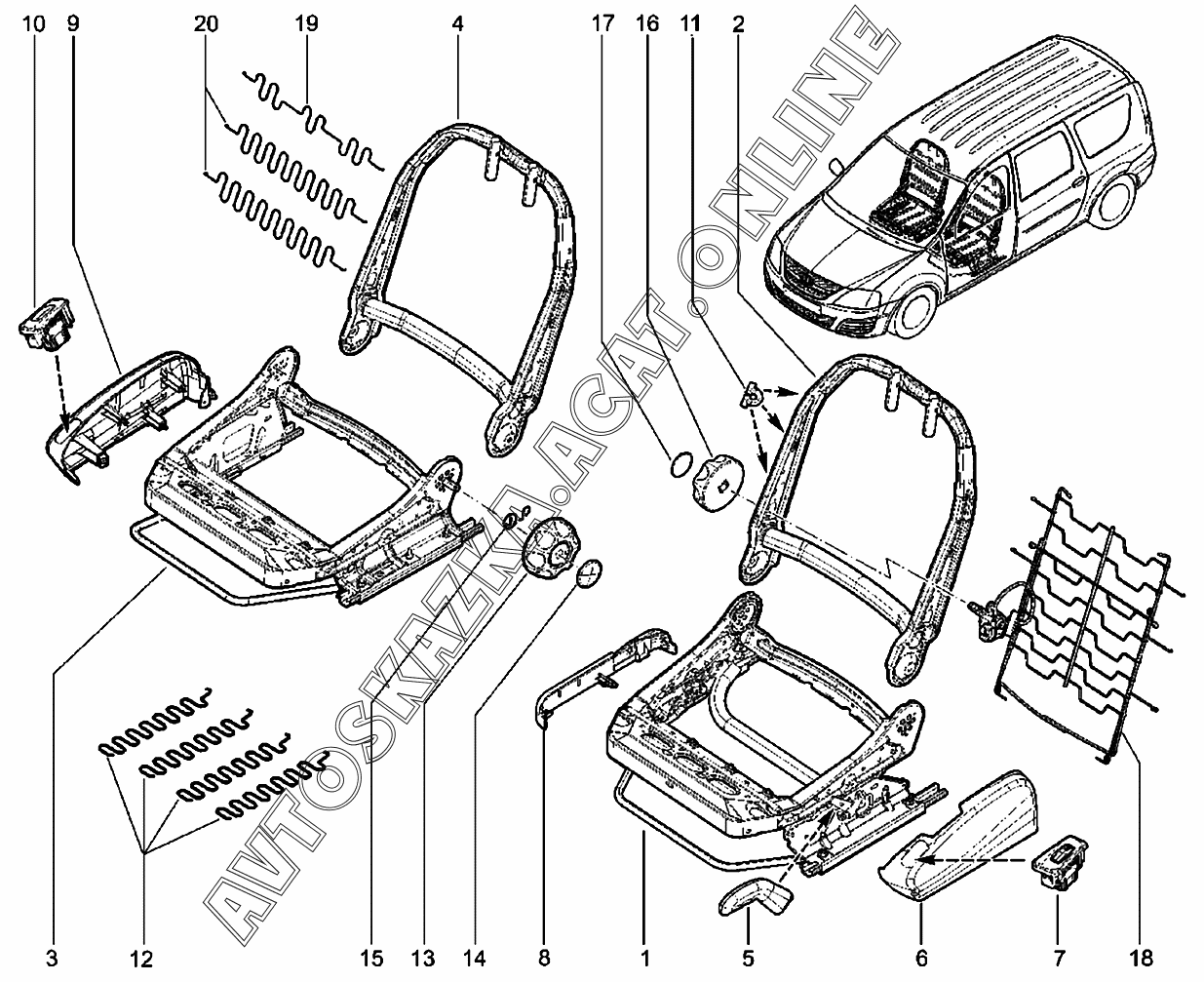 Каркас сидений первого ряда Е1 ВАЗ Largus