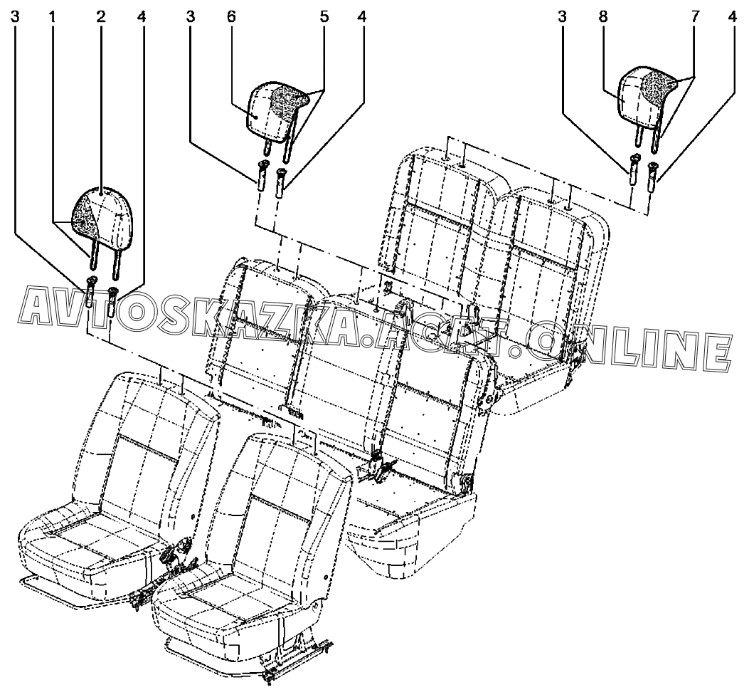 | Название детали: | Обивка подголовника сиденья второго ряда "l-образный" е1 |