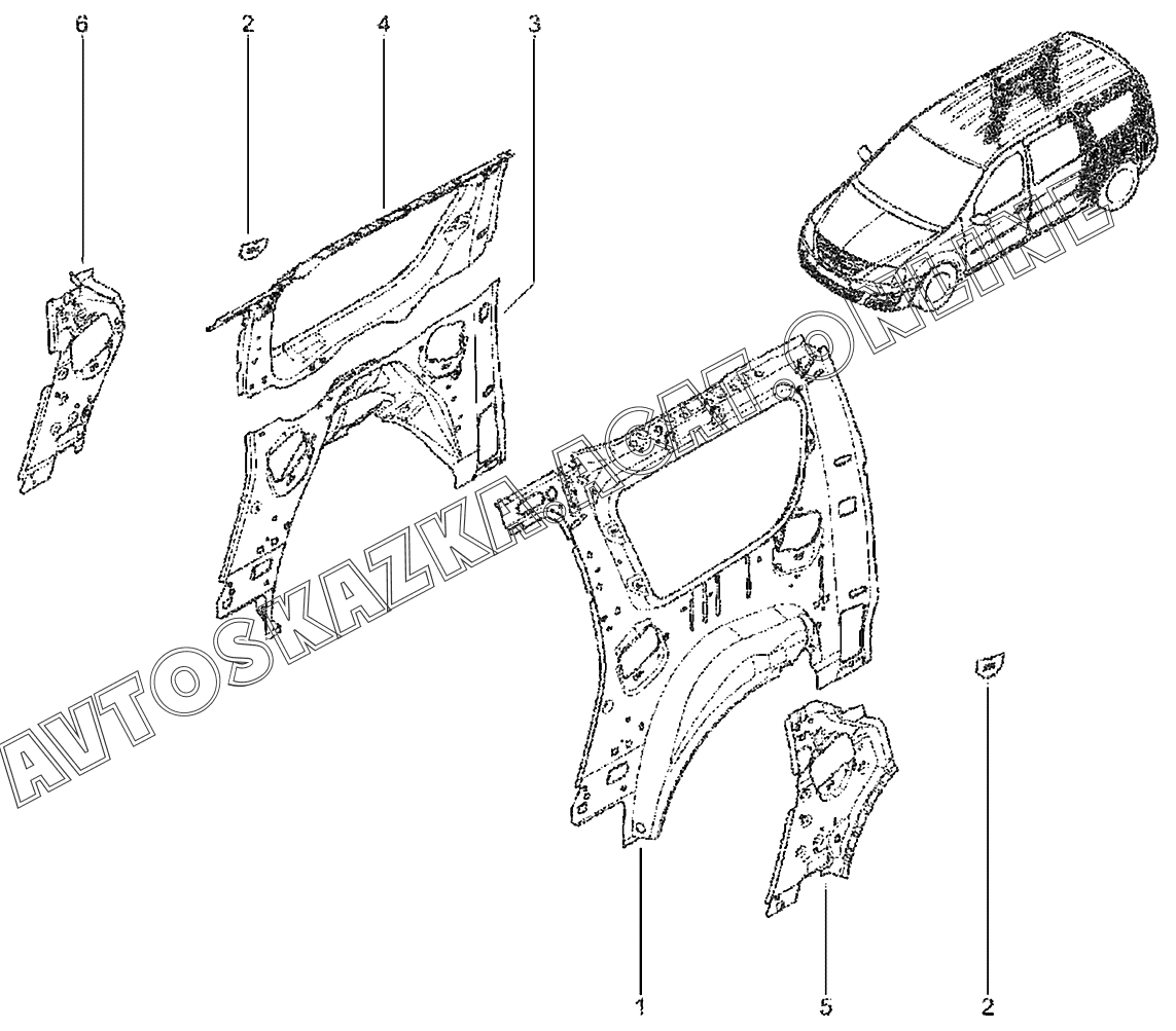 | Название детали: | Панель внутренняя задней боковины правая верхняя часть |