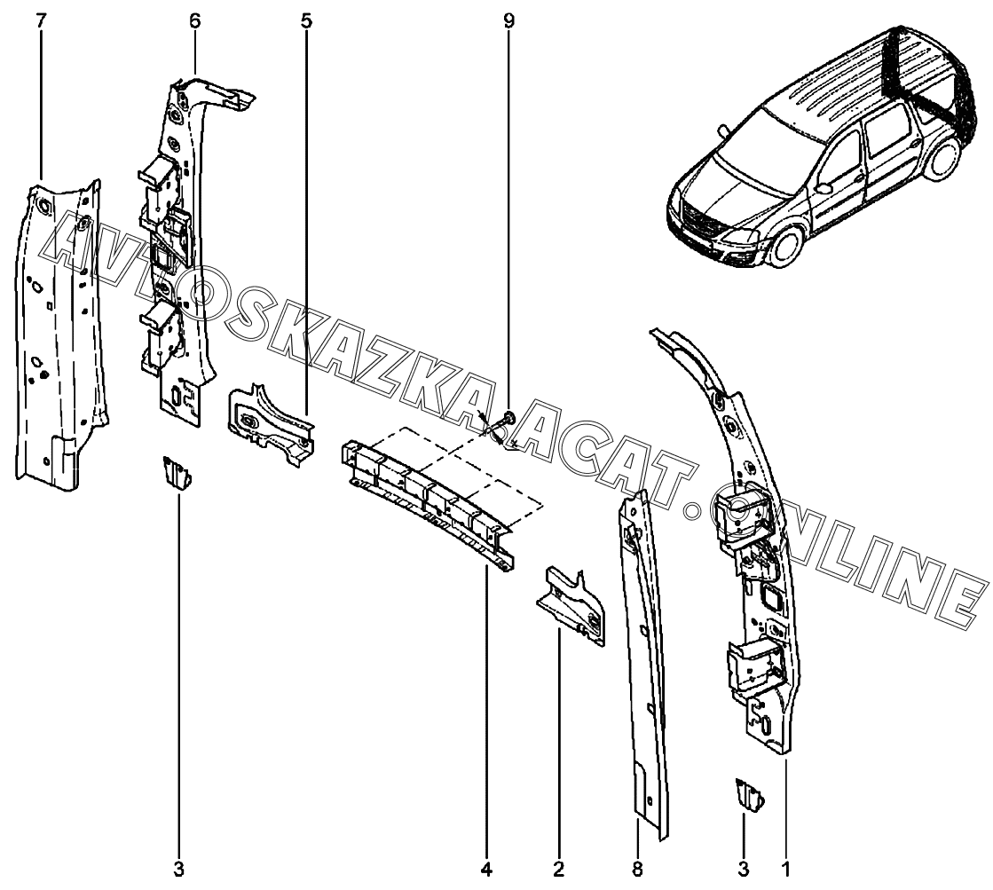 | Название детали: | Стойка боковины задняя правая в сборе |