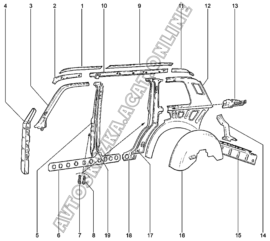 Каркас боковины и задка (2131) ВАЗ 21214 (21214, Urban)