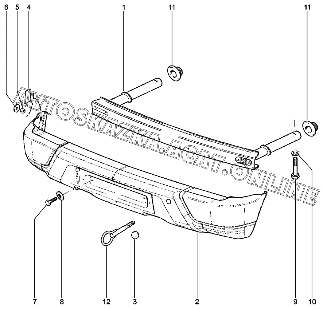 | Название детали: | Болт М14х70 крепления бампера 8450053244 |