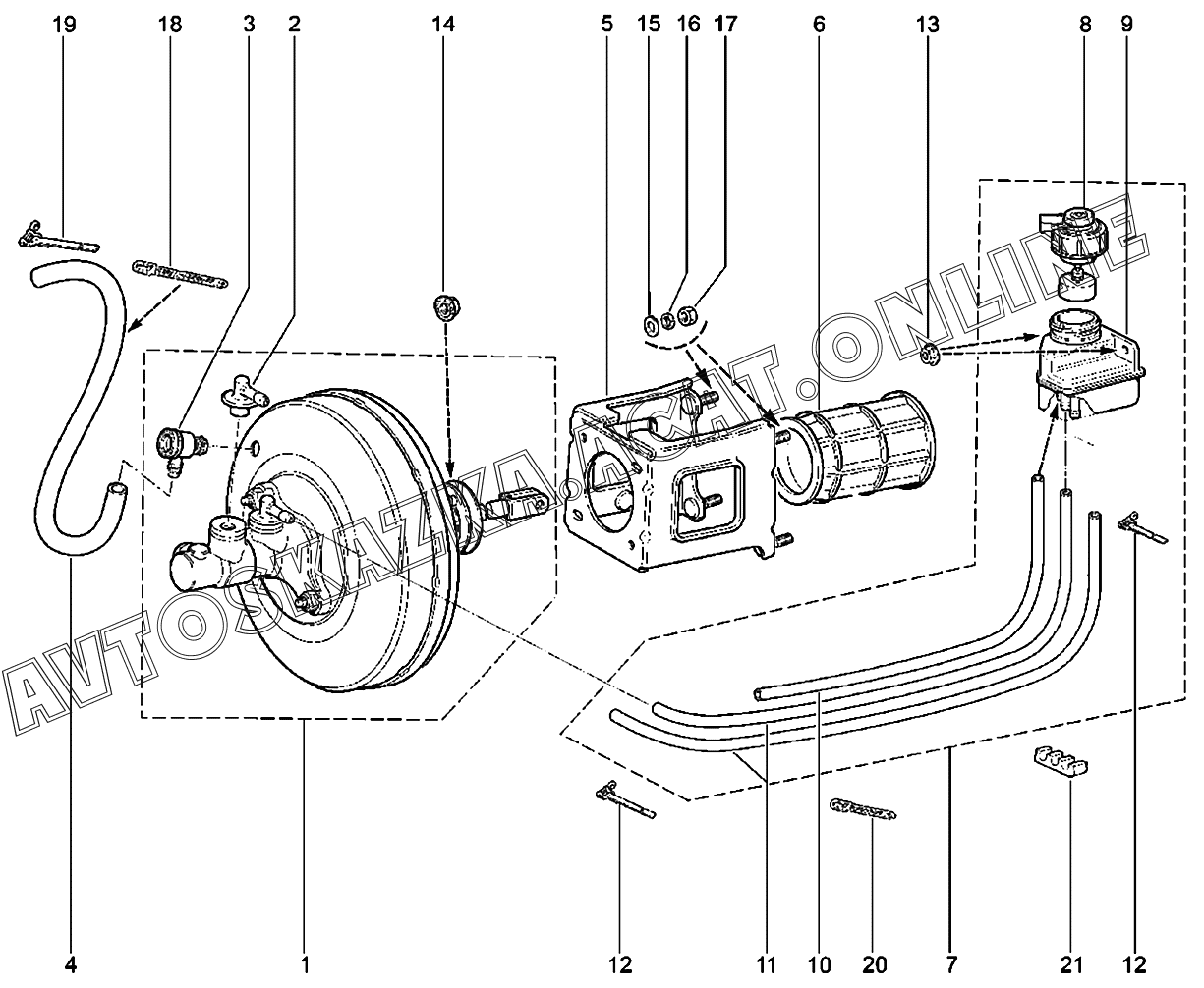 Элементы привода тормозов ВАЗ 2131 (21310, 21314)