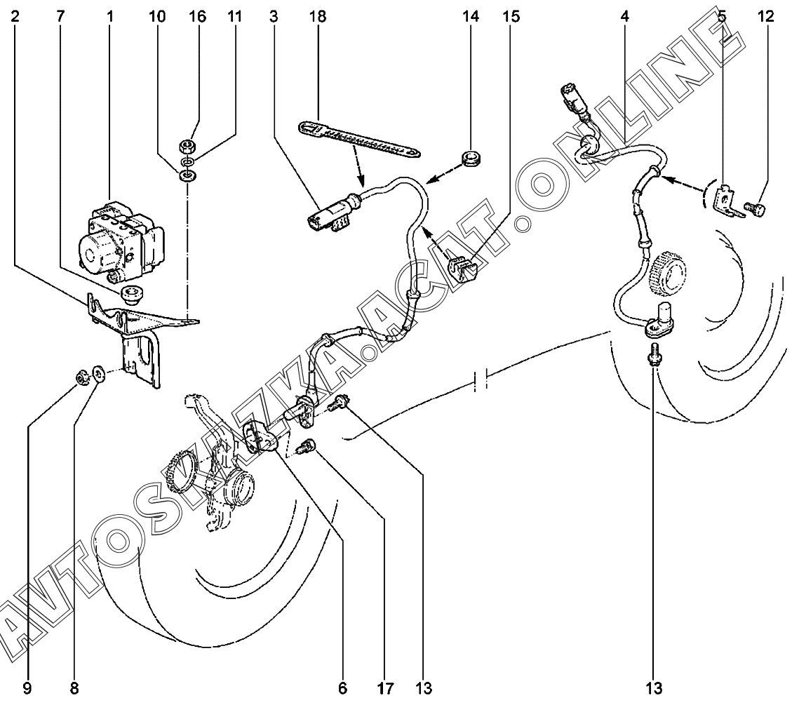 Гидроагрегат и датчики скорости колес ВАЗ 2131 (21310, 21314)