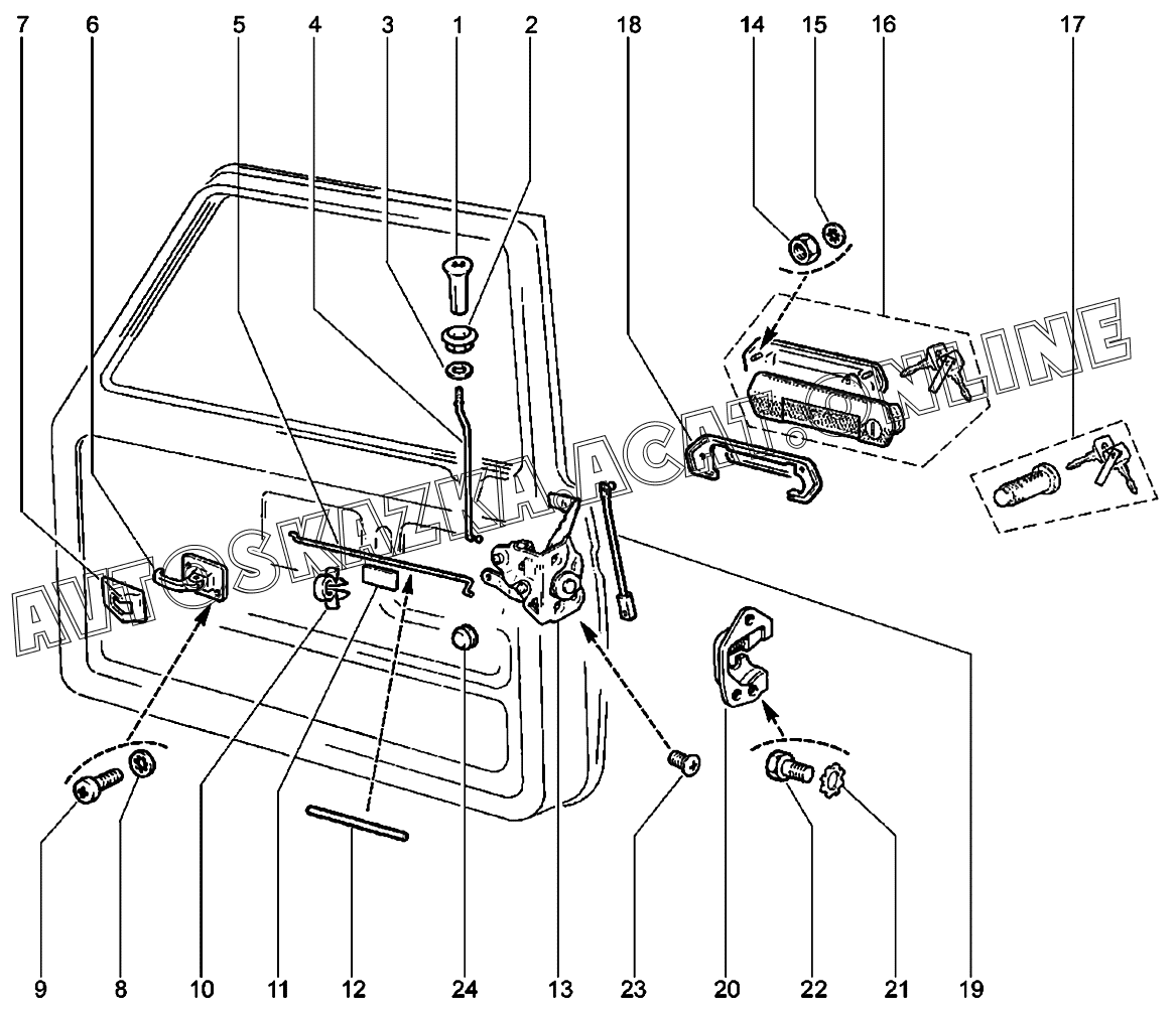 Замки и ручки передних дверей ВАЗ 2131 (21310, 21314)