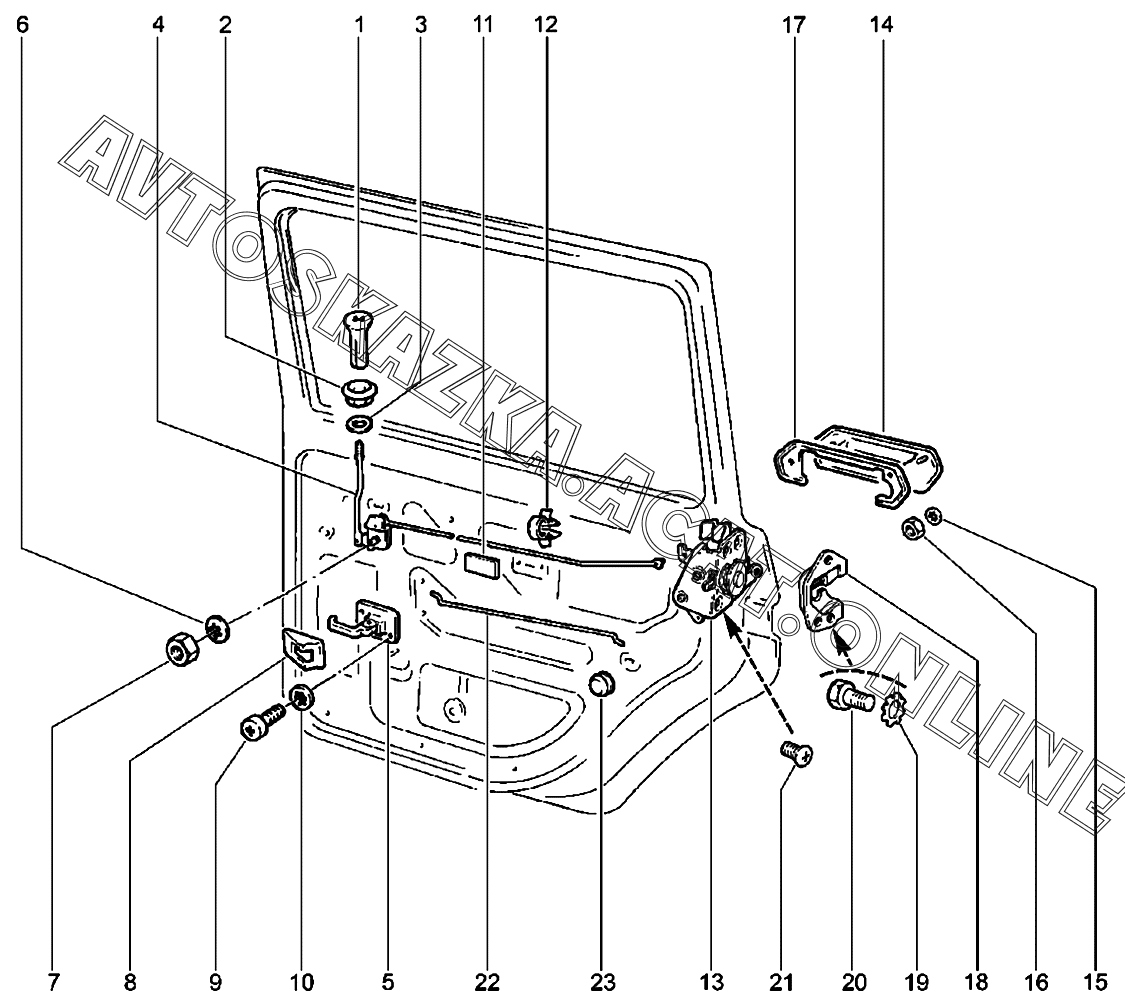 Замки и ручки задних дверей ВАЗ 2131 (21310, 21314)