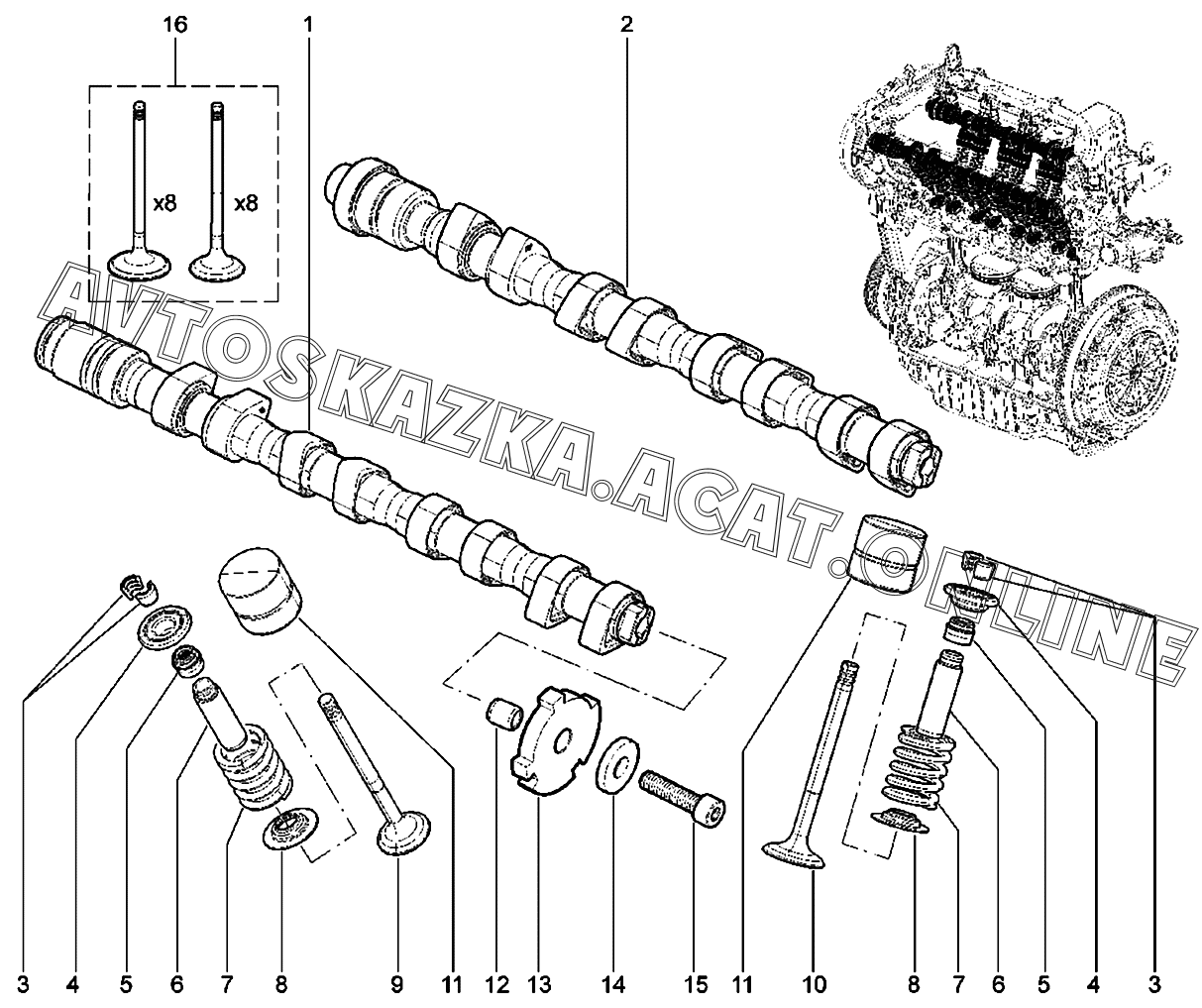 Распредвалы, клапаны ВАЗ X-Ray (Lada X-Ray, X-Ray Cross)